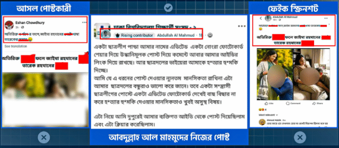 সামাজিক যোগাযোগমাধ্যমে সম্প্রতি একটি স্ক্রিনশট ছড়িয়ে দাবি করা হচ্ছে, ঢাকা বিশ্ববিদ্যালয়ের শিক্ষার্থী আবদুল্যা আল মাহমুদ তার ফেসবুক আইডি থেকে প্রধানমন্ত্রী তারেক রহমান ও জাইমা রহমান-কে জড়িয়ে আপত্তিকর ছবি পোস্ট করেছেন। স্ক্রিনশটটি এমনভাবে উপস্থাপন করা হয়েছে যেন এটি তার ব্যক্তিগত আইডি থেকে দেওয়া একটি আসল পোস্ট।