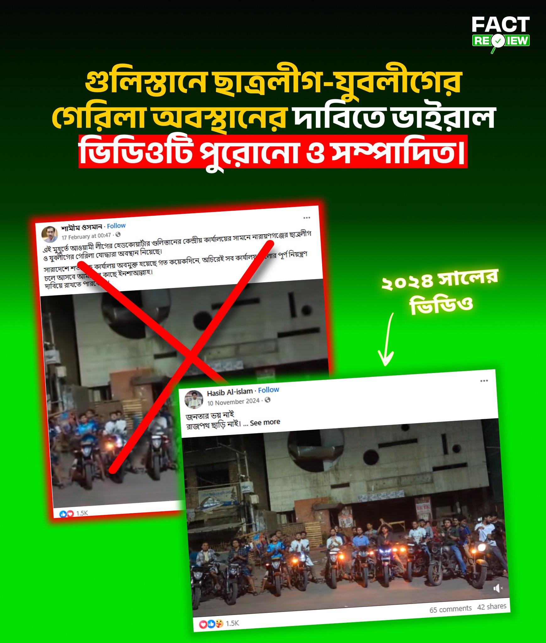 সুতরাং, গুলিস্তানে ছাত্রলীগ ও যুবলীগের গেরিলা যোদ্ধাদের অবস্থানের দাবিতে প্রচারিত ভিডিওটি পুরোনো ও সম্পাদিত, এবং দাবিটি সম্পূর্ণ মিথ্যা।