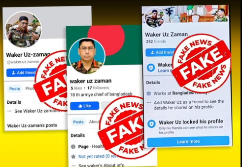 সামাজিক যোগাযোগমাধ্যম ফেসবুকে সেনাপ্রধান ওয়াকার-উজ-জামানের নামে কিছু ব্যক্তিগত প্রোফাইল ও পেজ লক্ষ্য করা যাচ্ছে, যেগুলো থেকে বিভিন্ন বিভ্রান্তিকর তথ্য প্রচার করা হচ্ছে। বিষয়টি আমলে নিয়ে আইএসপিআর একটি প্রেস বিজ্ঞপ্তি জারি করে উল্লিখিত পেজ ও আইডিগুলোকে ভুয়া এবং মিথ্যা বলে নিশ্চিত করেছে।