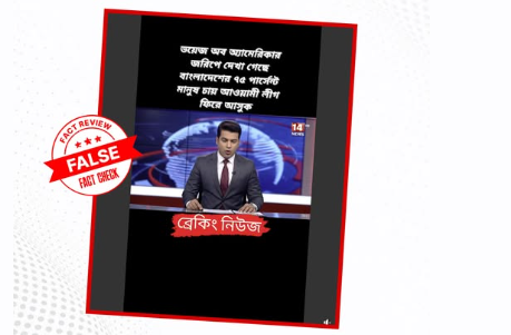 অতএব, ভয়েস অফ আমেরিকার নামে প্রচারিত “৭৫ শতাংশ মানুষ আওয়ামী লীগকে চায়” দাবি সম্পূর্ণ মিথ্যা, এআই–উৎপাদিত একটি ভিডিওর মাধ্যমে বিভ্রান্তি ছড়ানোর উদ্দেশ্যেই প্রচার করা হয়েছে।