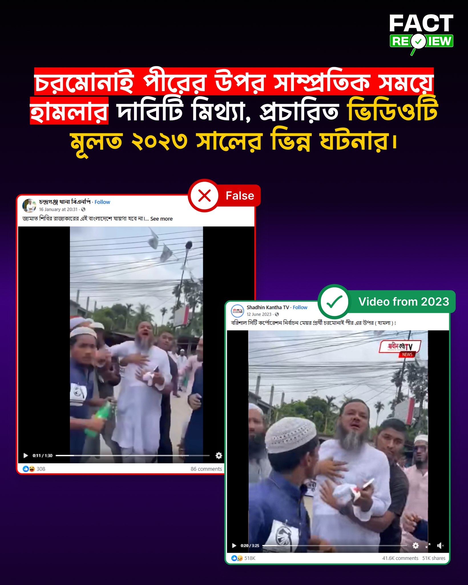 সাম্প্রতিক সময়ে সামাজিক যোগাযোগমাধ্যমে একটি ভিডিও ছড়িয়ে দাবি করা হচ্ছে—“চরমোনাই পীরের উপর সন্ত্রাসীদের হামলা; জামায়াত জোটে না যাওয়ায় এই হামলা ঘটানো হয়েছে”—এমন তথ্য একটি সূত্রের বরাতে প্রচার করা হয়েছে। ভিডিওটি ফেসবুক ও ইনস্টাগ্রামসহ বিভিন্ন প্ল্যাটফর্মে ভাইরাল হয় এবং এটিকে সাম্প্রতিক ঘটনার মতো উপস্থাপন করা হয়।
