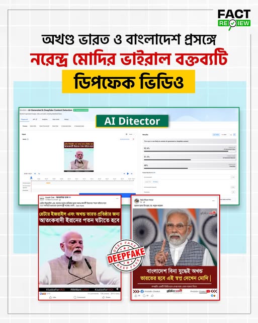 তবে যাচাই করে দেখা গেছে, ভিডিওটি কোনো বাস্তব ঘটনার নয়। বিশ্লেষণে ব্যবহৃত এআই কনটেন্ট ডিটেকশন টুল অনুযায়ী ভিডিওটির ৯৯.৯% অংশ কৃত্রিম বুদ্ধিমত্তা দ্বারা তৈরি হওয়ার সম্ভাবনা রয়েছে। ভিডিওতে এআই-জেনারেটেড ভিজ্যুয়ালের স্পষ্ট ইঙ্গিত পাওয়া গেছে এবং এটি প্রকৃত দুর্ঘটনার ফুটেজ নয়।