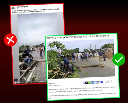 সম্প্রতি সামাজিক যোগাযোগমাধ্যমে একটি ছবি ছড়িয়ে পড়েছে, যেখানে দাবি করা হয়েছে—‘বাংলাদেশ আওয়ামী লীগ ঘোষিত শাটডাউন কর্মসূচি সফল করতে মাদারীপুর জেলা আওয়ামী লীগ ও অঙ্গসংগঠনের উদ্যোগে ঢাকা–বরিশাল মহাসড়ক অবরোধ করা হয়েছে।’ তবে অনুসন্ধানে দেখা গেছে, এই দাবি সম্পূর্ণ মিথ্যা। যে ছবিটিকে আওয়ামী লীগের অবরোধ বলে প্রচার করা হচ্ছে, সেটি আসলে ফরিদপুর–৪ আসনের সীমানা পুনর্বিন্যাসের প্রতিবাদে স্থানীয়দের সড়ক অবরোধের ছবি। সমকাল পত্রিকায় প্রকাশিত প্রতিবেদনের মাধ্যমেই ছবিটির প্রকৃত প্রেক্ষাপট নিশ্চিত হয়েছে।