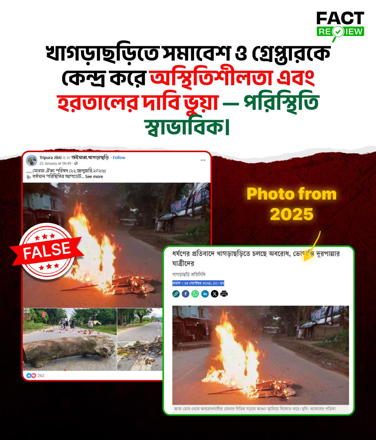 পাশাপাশি পোস্টে সংযুক্ত ছবিগুলো পর্যালোচনায় জানা গেছে, সেগুলো সাম্প্রতিক ঘটনার নয়; বরং গত বছরের একটি ধর্ষণবিরোধী আন্দোলনকে কেন্দ্র করে খাগড়াছড়িতে হওয়া অবরোধের সময়কার ছবি। সার্বিক যাচাইয়ে আলোচিত কর্মসূচি ও গ্রেপ্তারসংক্রান্ত বিষয়ে অস্থিতিশীলতা বা সহিংসতার দাবির পক্ষে কোনো তথ্যভিত্তিক প্রমাণ মেলেনি। অতএব আলোচিত দাবিটি সম্পূর্ণ মিথ্যা ও বিভ্রান্তিকর গুজব।