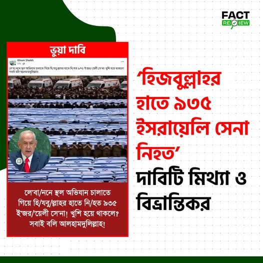 ‘হিজবুল্লাহর হাতে ৯৩৫ ইসরায়েলি সেনা নিহত’ দাবিটি মিথ্যা ও বিভ্রান্তিকর